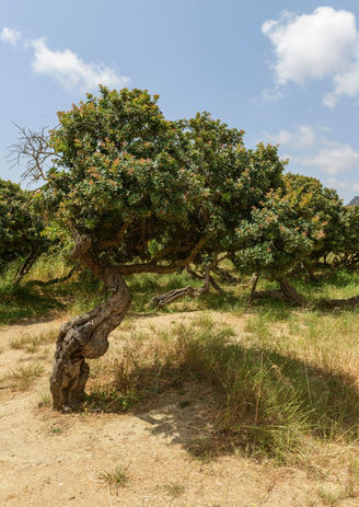기오섬 남쪽 13Km 지점에 있는 쏠로뽀따미부터 매스틱 마을이라고 부르는데 깜보스 남쪽의 좌우에 있는 나무들이 전부 유향나무다. 이곳에 있는 한 그루의 유향나무에서 해마다 생산되는 매스틱은 200g이다. 매스틱은 화장품 재료와 천연 껌, 과자와 사탕류 등으로 사용되고 있다.